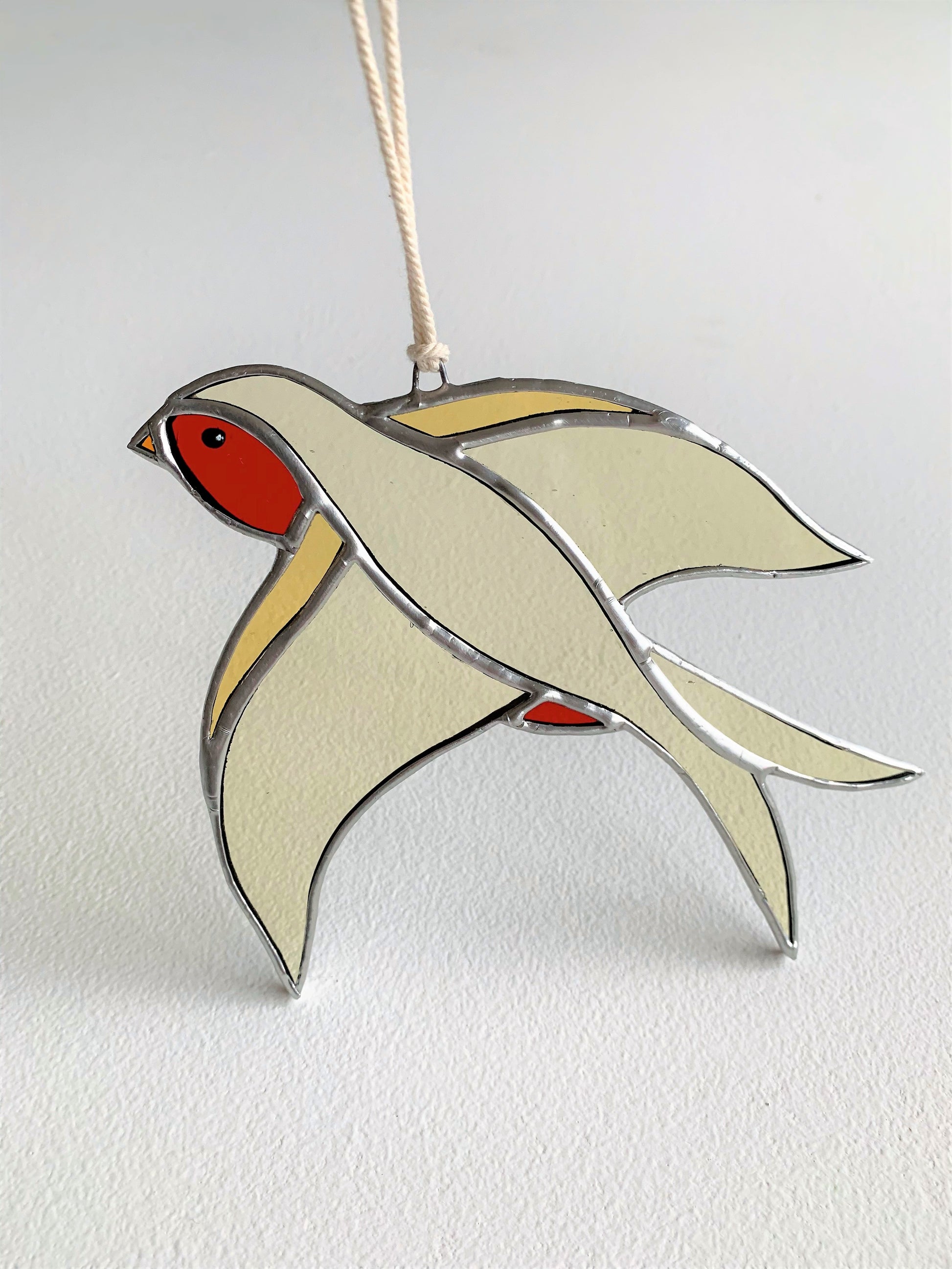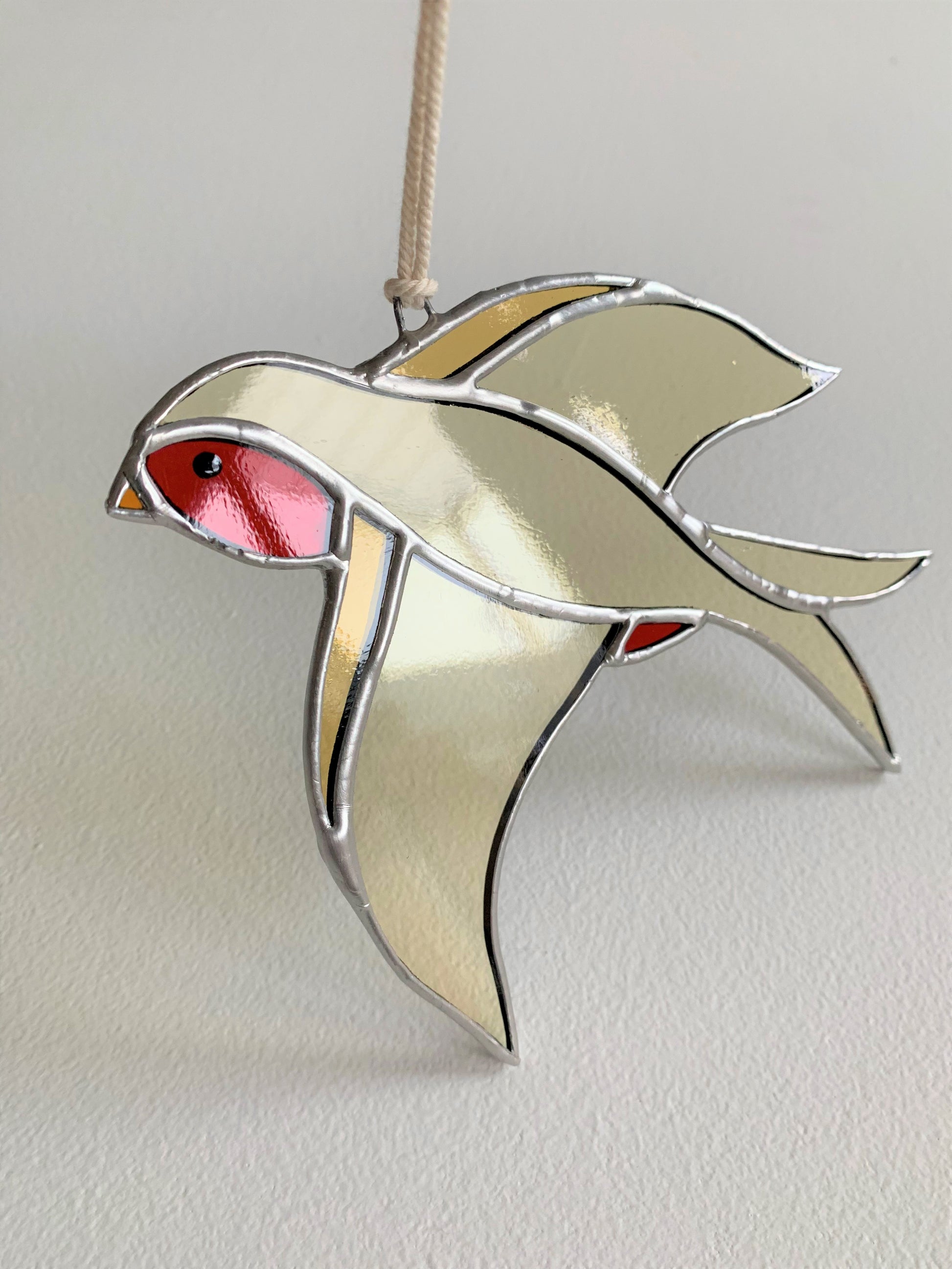 Vakkundig vervaardigde glas-in-loodkunst die unieke kleurrijke schoonheid aan elke ruimte toevoegt. Dit stuk is 13x13 cm groot en wordt geleverd met touw om het werk aan je muur of voor je raam te hangen.