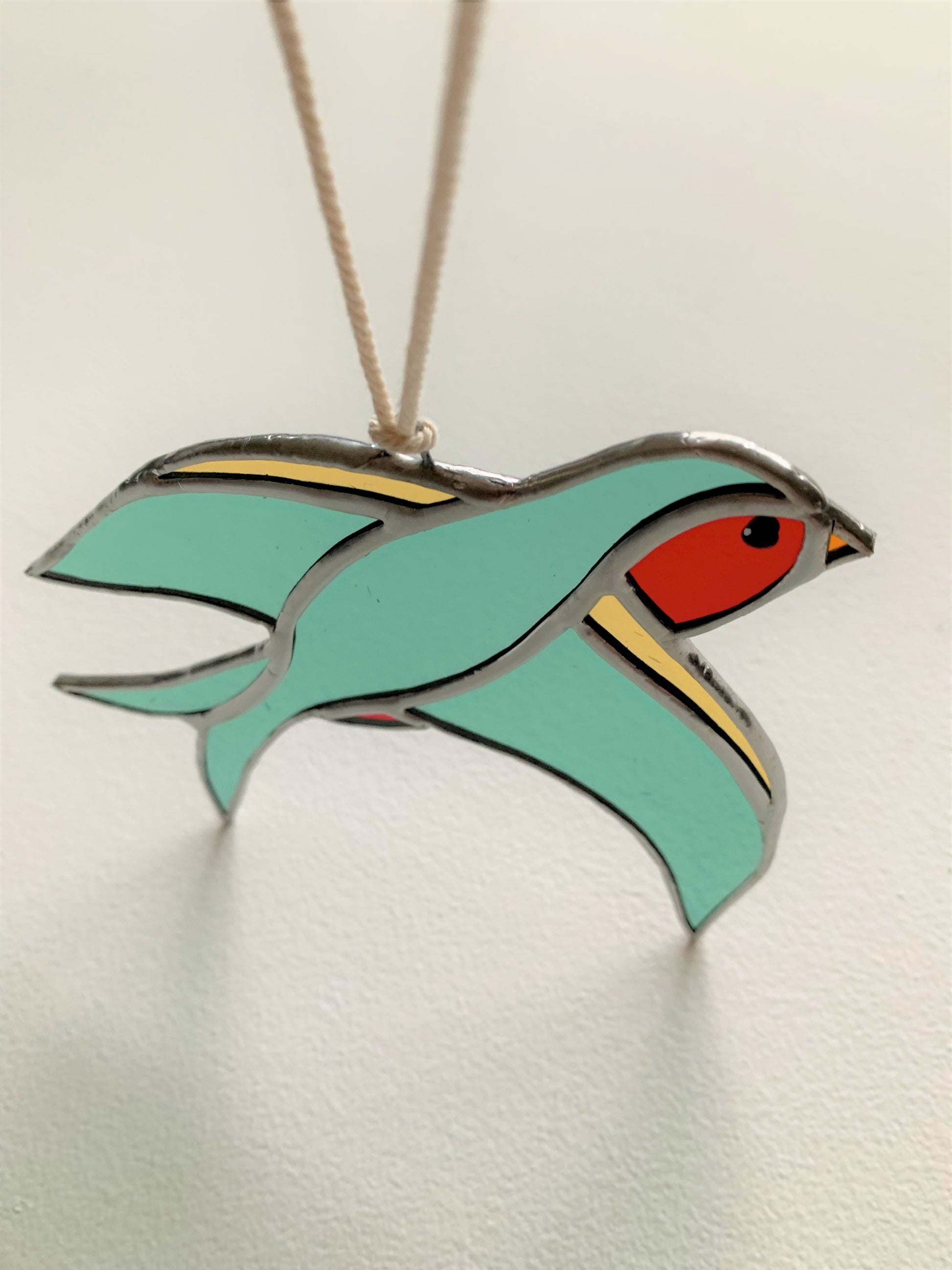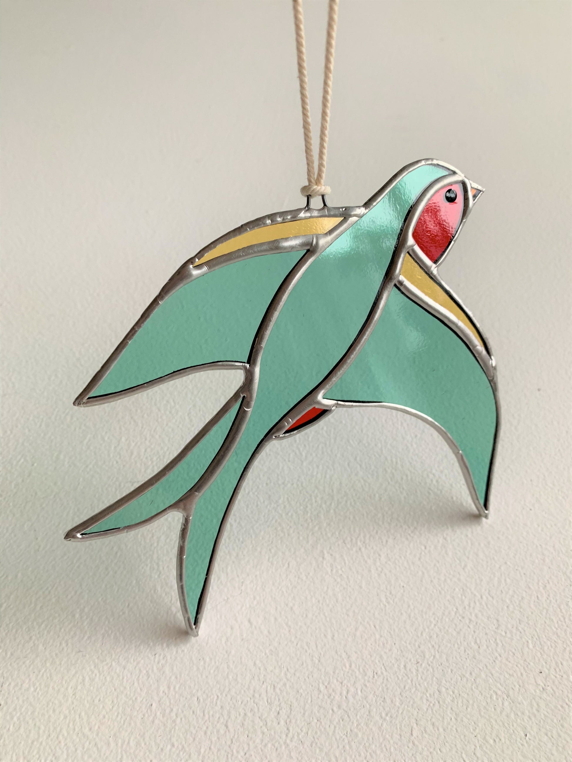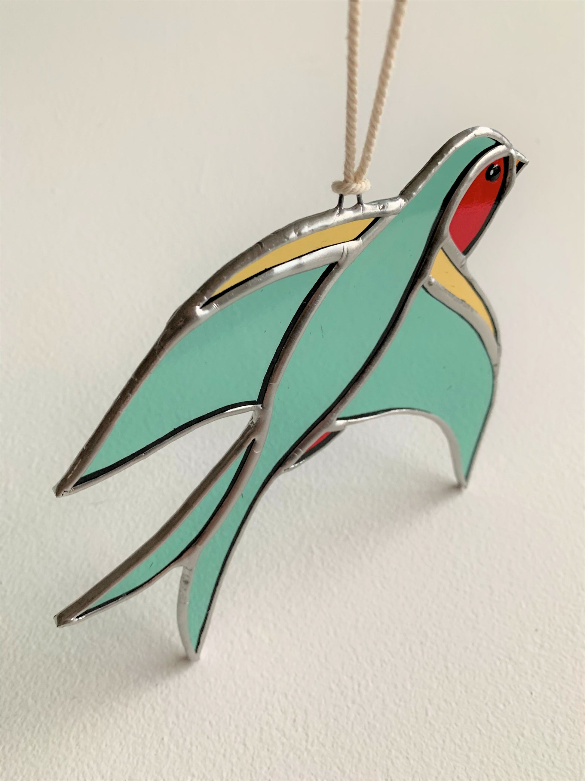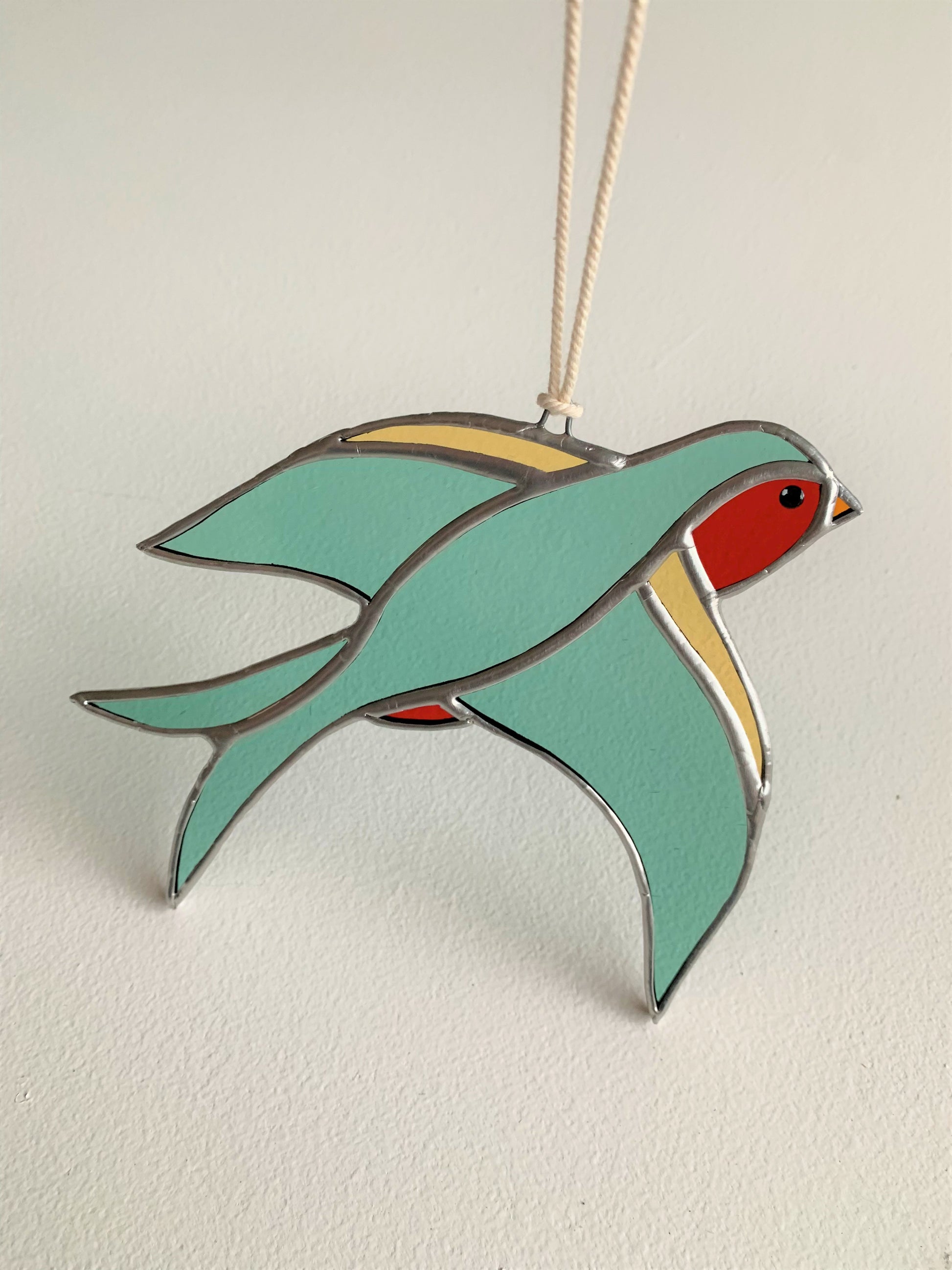 Vakkundig vervaardigde glas-in-loodkunst die unieke kleurrijke schoonheid aan elke ruimte toevoegt. Dit stuk is 13x13 cm groot en wordt geleverd met touw om het werk aan je muur of voor je raam te hangen.
